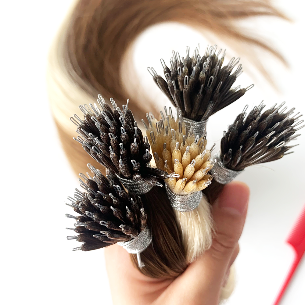 The nano ring extension are applied very similar to the micro ring method but uses a bead almost half the size so is less detectable when wearing the hair up in various styles, and optimises less visibility.